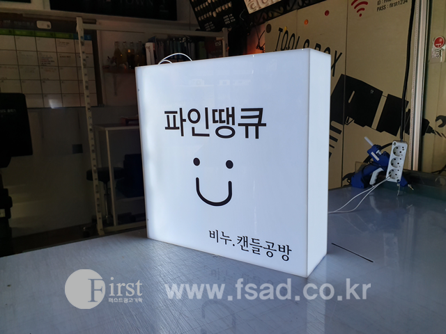 아크릴 간판의 핵심인 아크릴을 이용하여 간판을 만들고