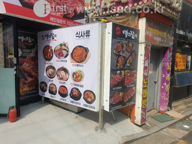 우선 전면 후렉스 간판과 측면 세로형 후렉스 간판의