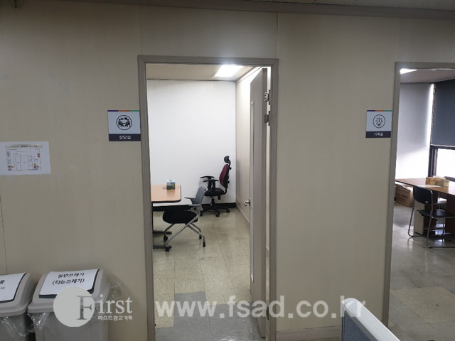 사무실 내부의 방앞에는 기획실, 교육실, 상담실등의