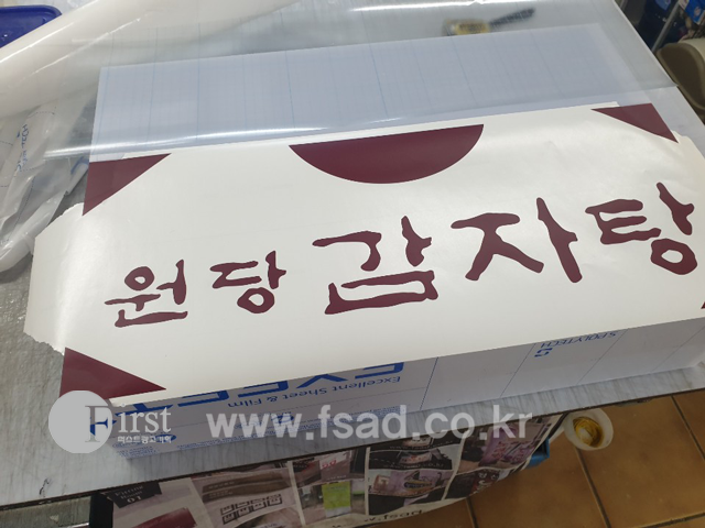 로고와 원당감자탕이라는 문구를 제작하는 모습입니다