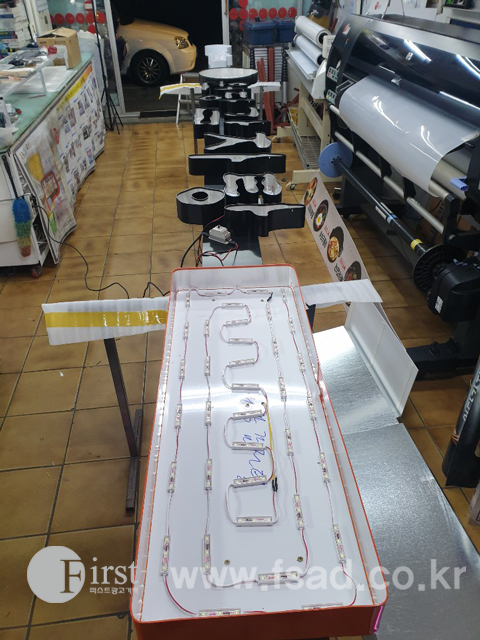 위 사진에 있는 문자채널들에 LED모듈을 장착하고 전기 배선들을 한땀한땀