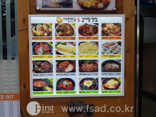 짠! 메인 메뉴판 및 메인 메뉴들의 실사를 액자식 틀에 넣어