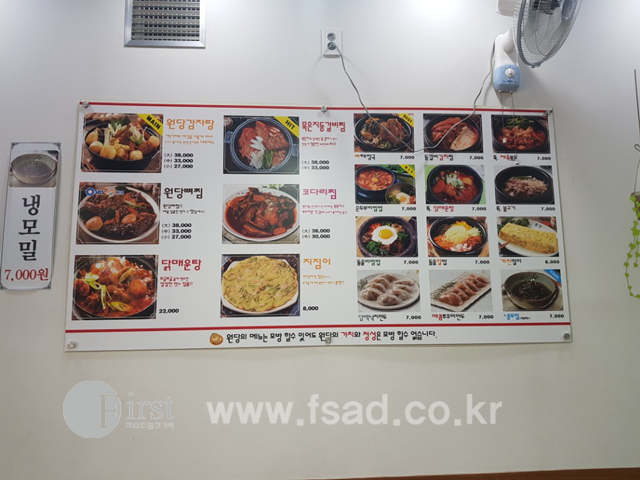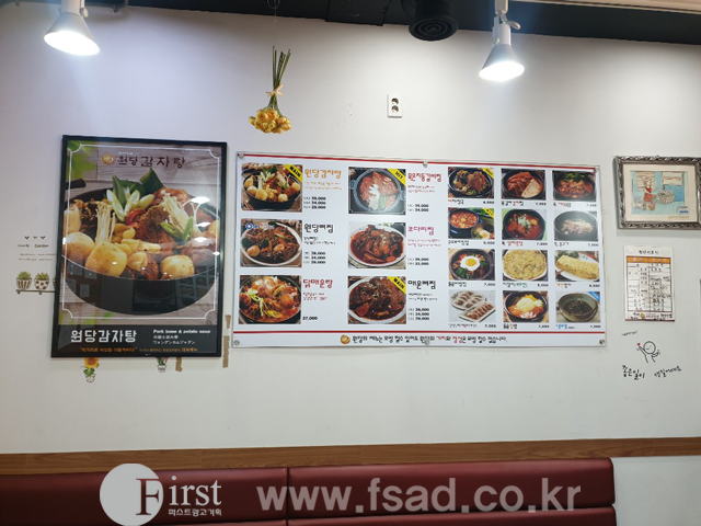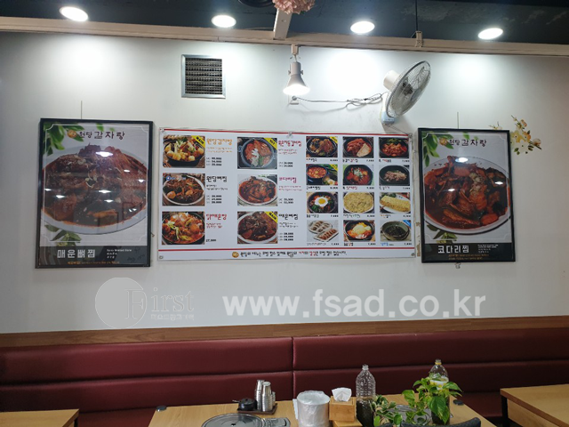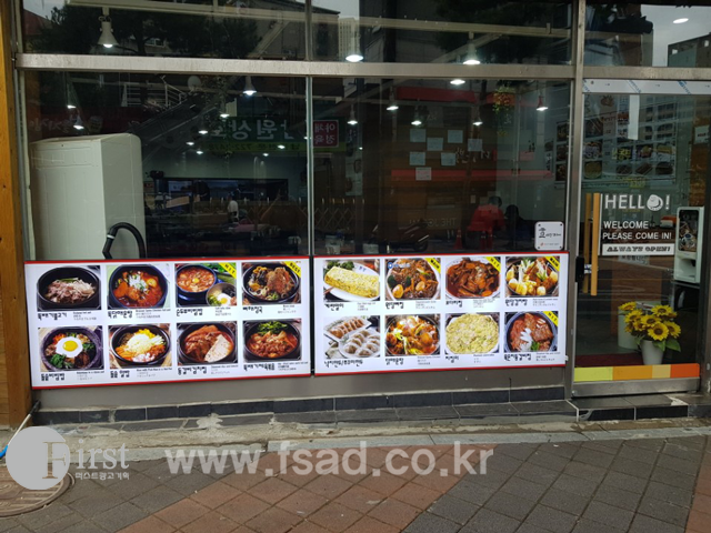 메인 전면간판 및 유리창 실사, 패브릭, 라이트패널 메뉴판등을