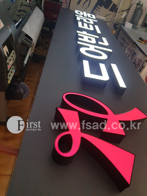 LED모듈을 부착한 입체문자의 모습인데요!