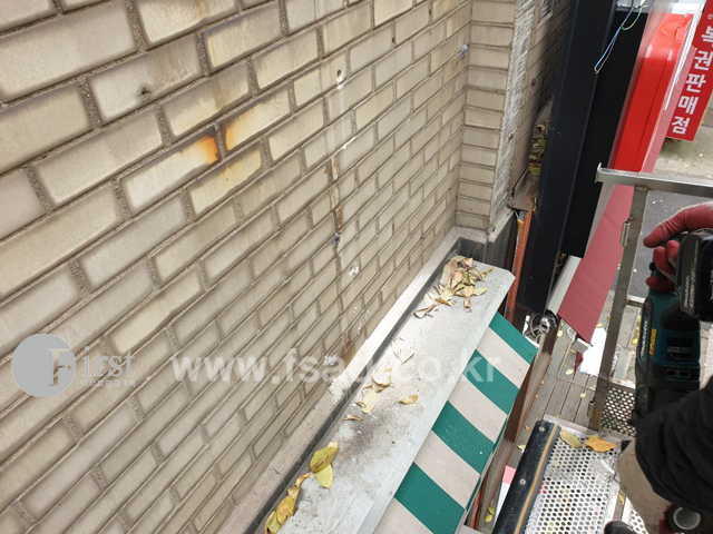 간판 거치대를 위해 구멍을 뚫고 그 구멍에