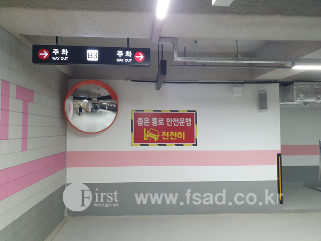 이렇게 각 층마다 안전운행 문구가 들어간 표찰등을 시공을 모두 끝낸 후