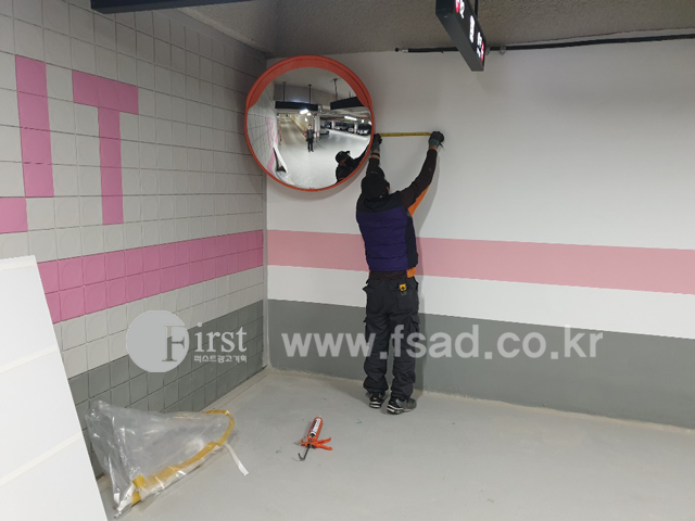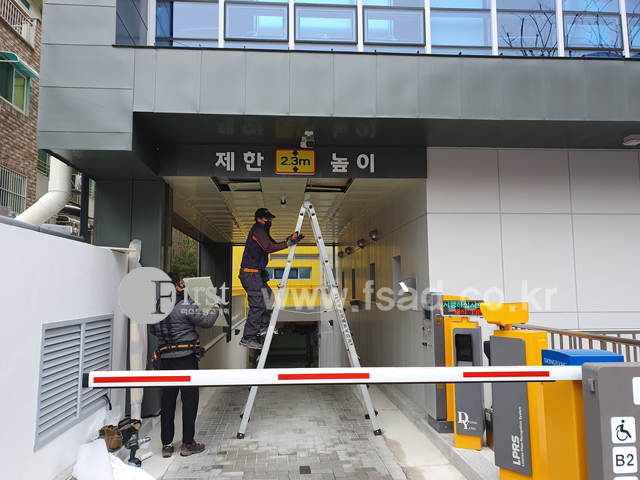 걸어주는 것으로 주차장 입구 사인물의 시공을 모두 끝냈습니다!!