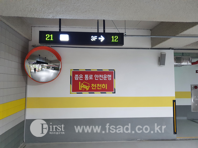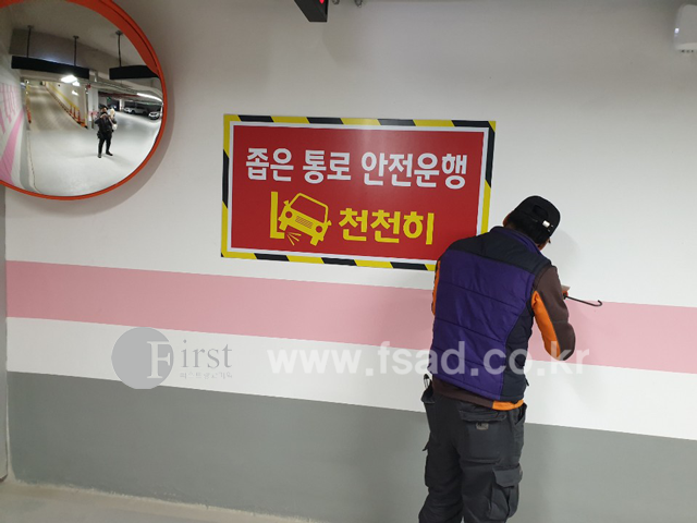 우선 주차장 시공을 하게 될 안전운행 문구가 들어간 표찰 입니다