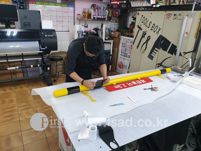 안전운행 표찰의 제작이 모두 끝났으니 이제는 높이제한 사인물을 제작할건대요