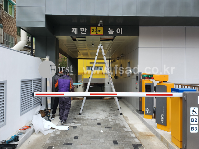 시공 장소에 도착 후 우선 높이제한 사인물 설치에 앞서 상황 파악을 위해 주차장들어가는