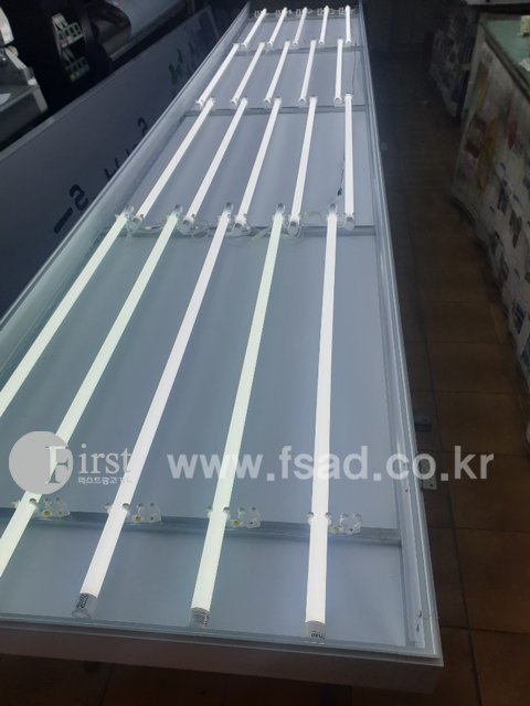 실측 후 미팅을 통해 LED형광등을 배열한 조명용 신규 후렉스 간판,
