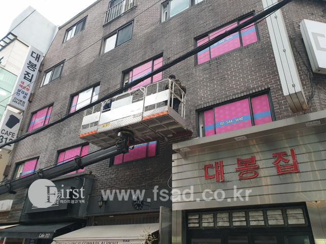 전면부분의 유리창과 전면#후렉스간판(사각 간판)을 철거하고