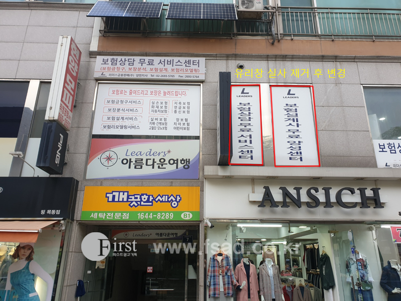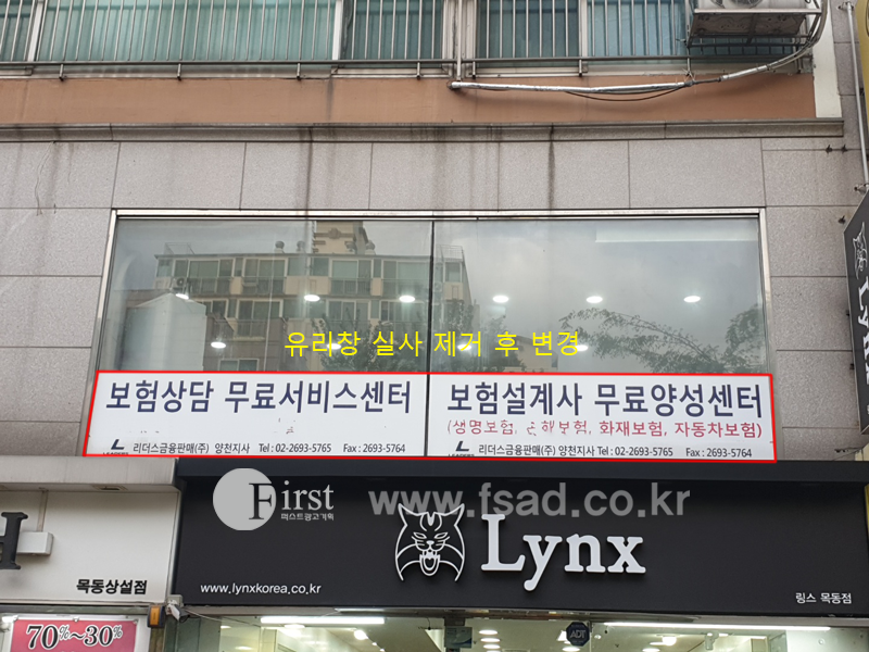 하단 부분의 유리창 실사 들은 깨끗하게 제거 후