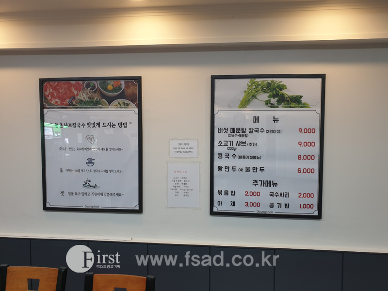 액자형메뉴판 의 장점으로는 나중에 가격이 변동 되거나