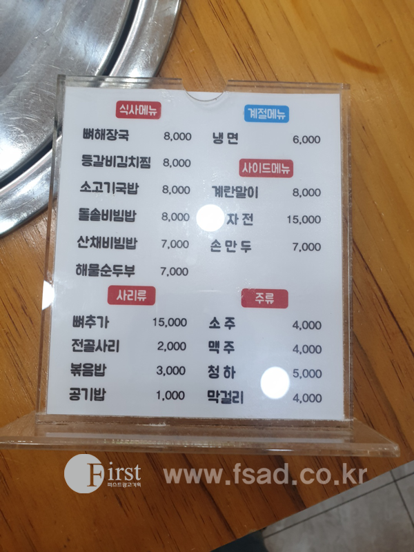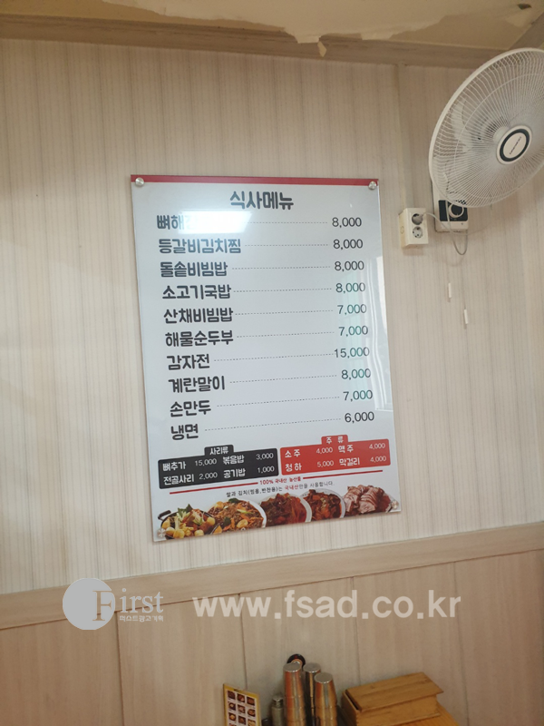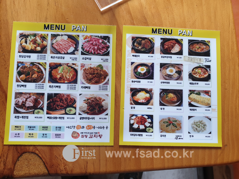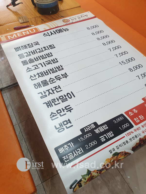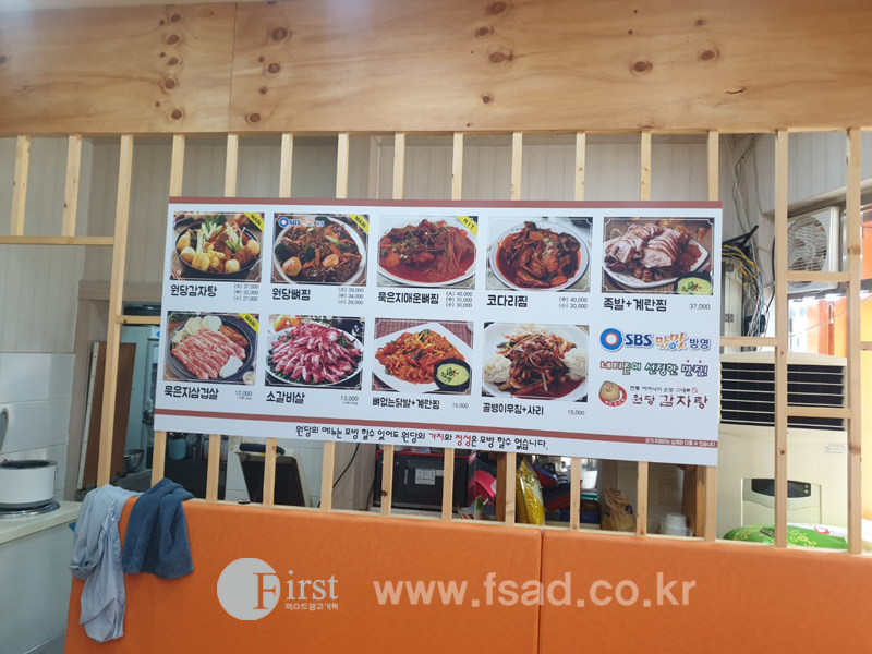 양천구간판 퍼스트광고기획 원당감자탕구로점 식당간판 메뉴실사 실사출력물 테이블메뉴판 포맥스실사 간판 양천간판 신정간판 목동간판 강서구간판 마곡간판 화곡간판 발산간판