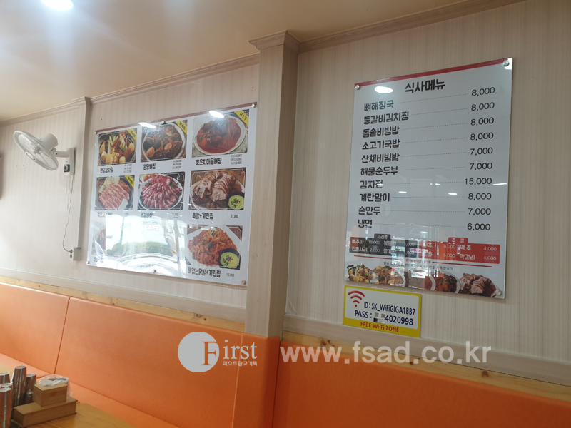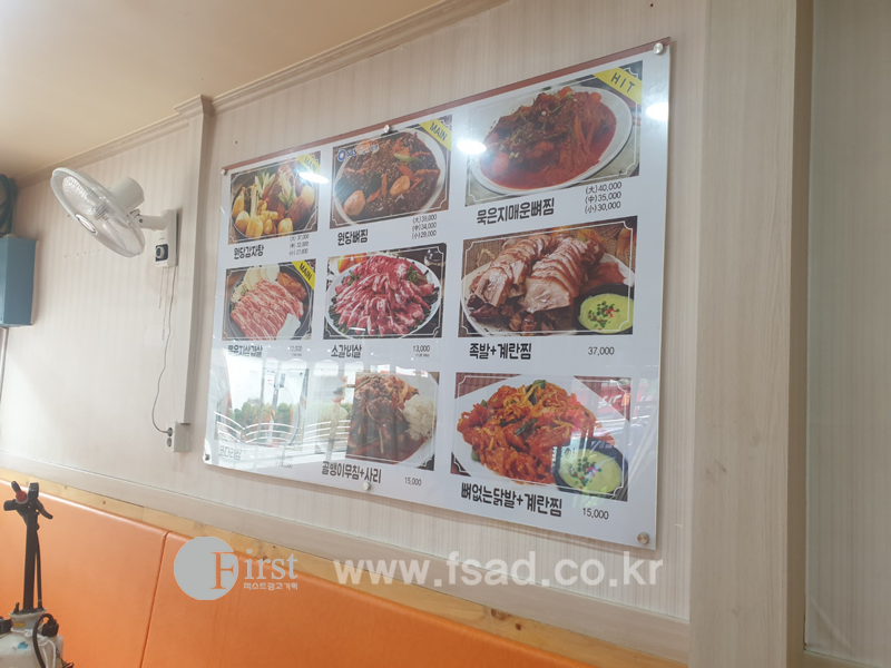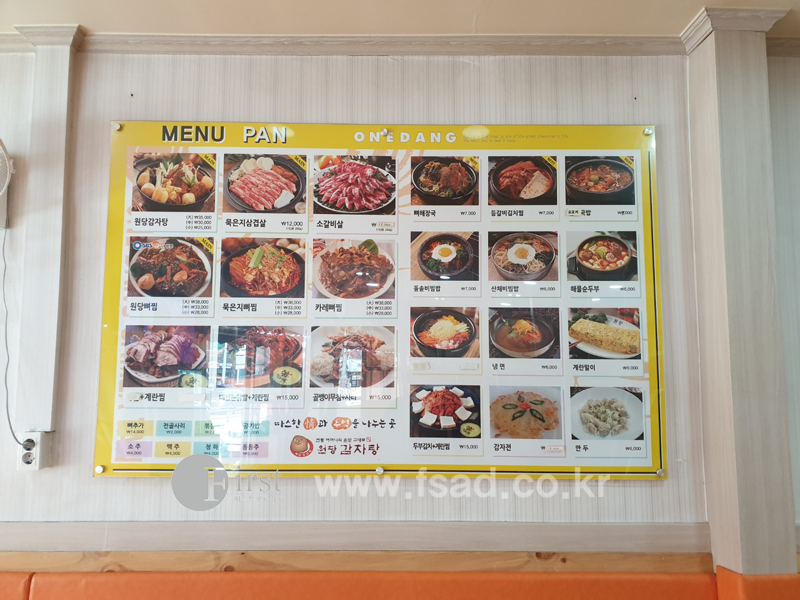 메인메뉴판 역시 같은 방법으로 시공해드렸습니다