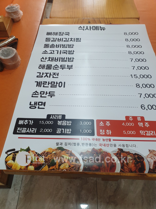 원당감자탕 구로점의 메뉴판실사 덧방 시공등이 모두 마무리 되었는데요!