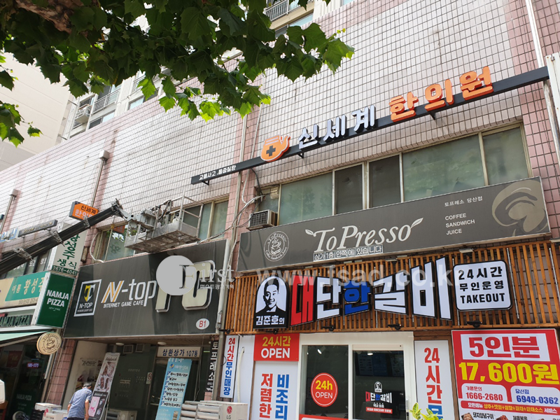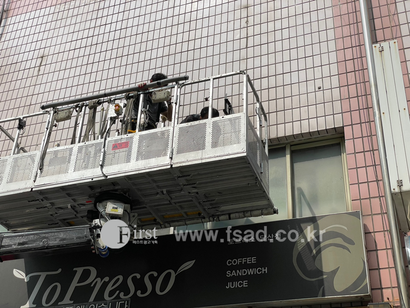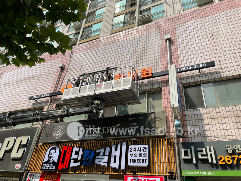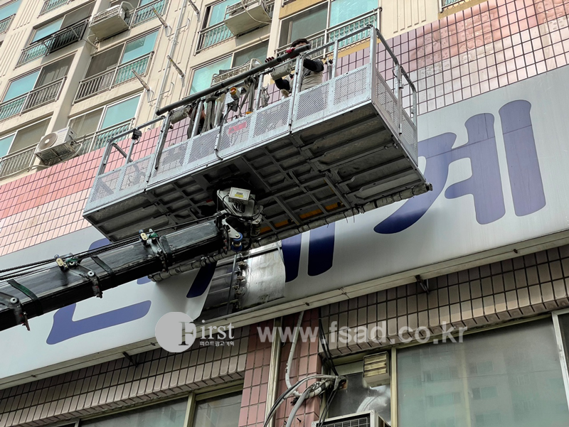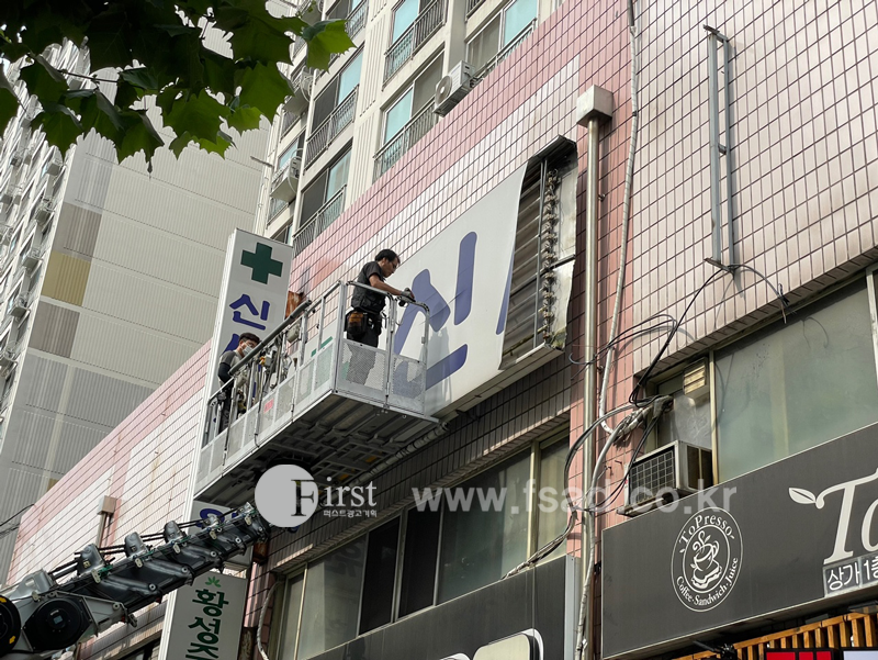 기존의 오래된 전면간판 을 철거하고