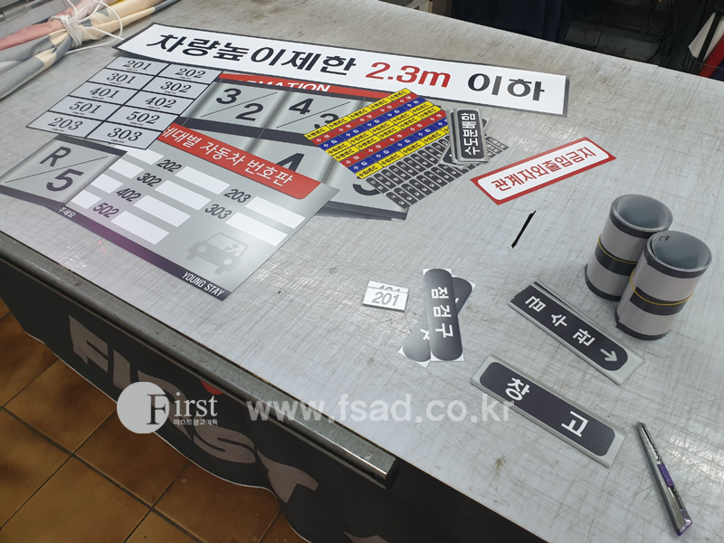또한 각층과 층간계단에 들어갈 표찰 및 호실표찰등 또한