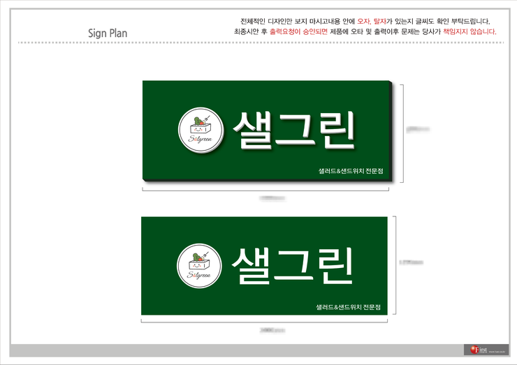 컨펌이 끝난 후의 샐그린의 간판 디자인으로