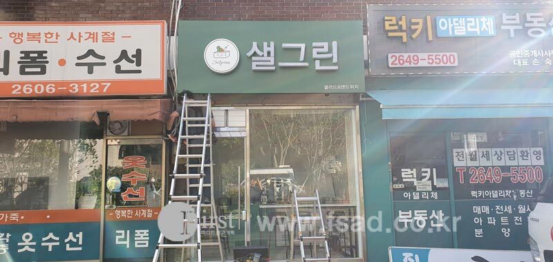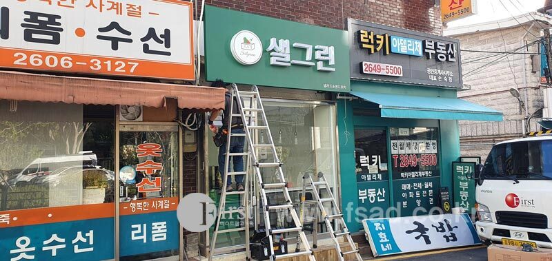 이렇게 하여 샐그린의 간판시공이 모두 끝이 났는데요