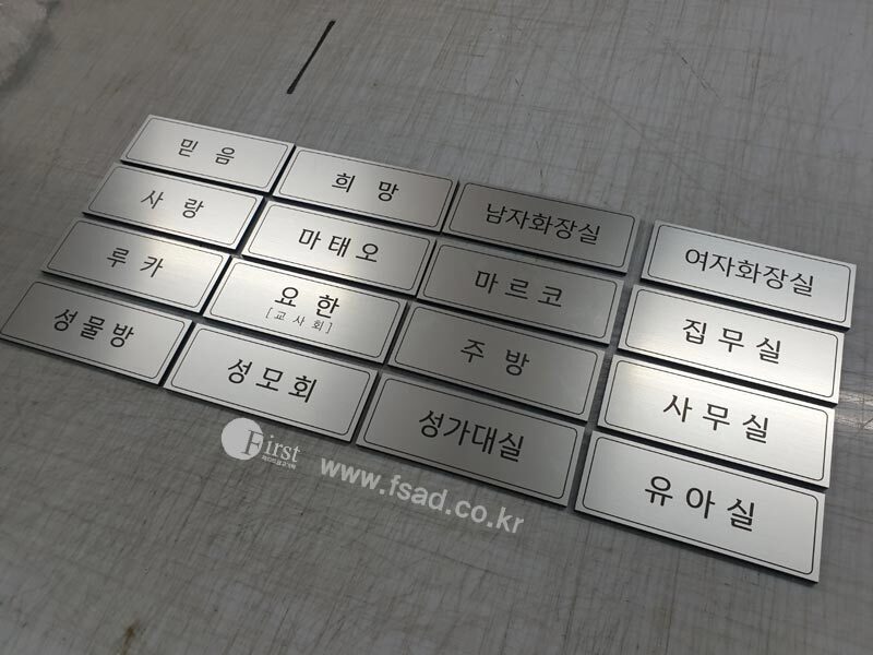 쨔잔~ 출입문에 각 방에 맞는 표찰을 시공해드렸는데요