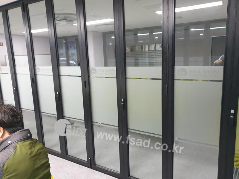 저희 퍼스트광고기획에 유리창 시트지와 내부 사인물에 관한