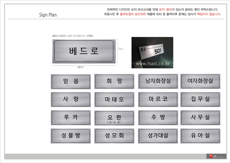 각 출입구 부분에 안내표찰을 시공해드리기로