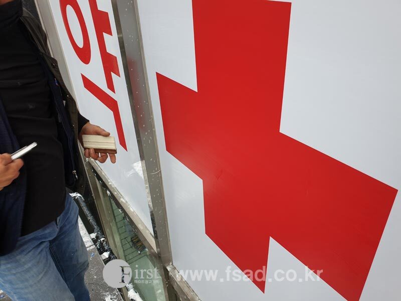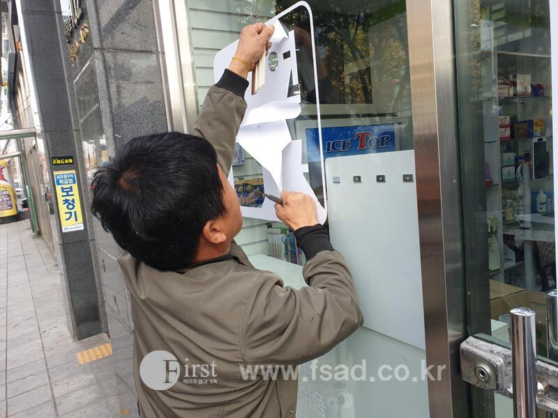 미리 준비한 시트커팅을 유리창에 부착해줄건데요^^