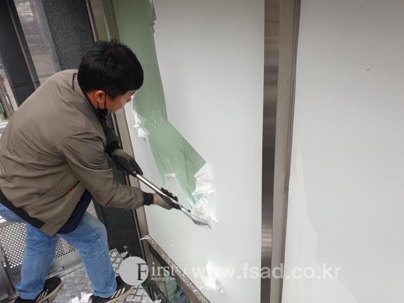 과장님께서는 1층 출입구 유리창선팅을 철거하는