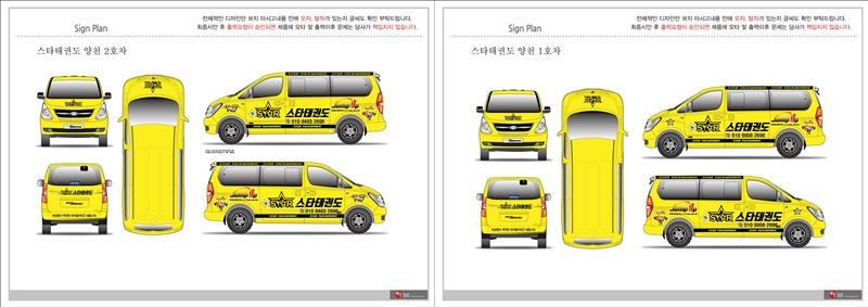 태권도학원 스타태권도 1호 2호차의 디자인 시안 입니다
