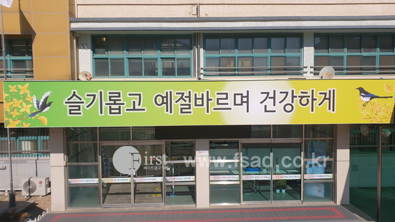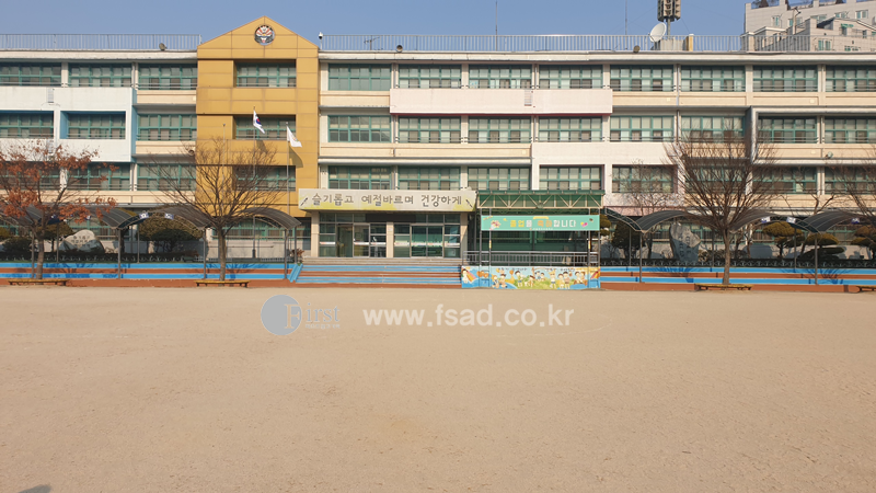 초등학교 본관의 캐노피 간판이