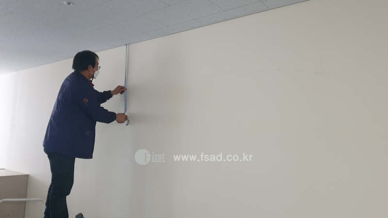 사이즈 체크를 해준 후 화이트보드게시판을 시공할건데요