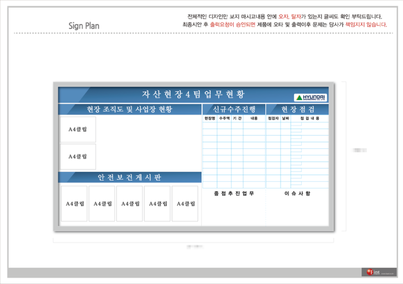 현대엔지니어링 현장사무실 실내사인시공 할 당시