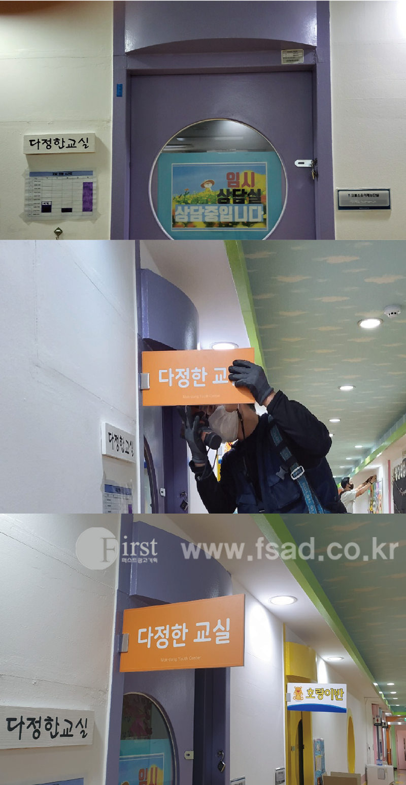 시립목동청소년센터의 실내사인물 시공하는 모습들을 모아봤어요^^