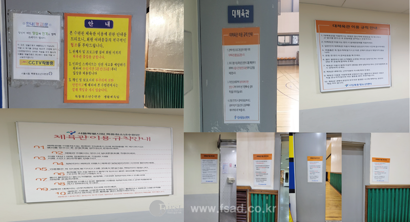 소체육관 이용규칙안내 문구등이