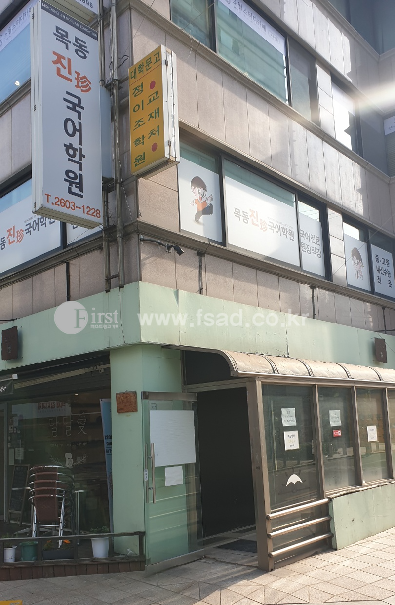 건물 정면 부분에는 아크릴큐브 돌출간판을