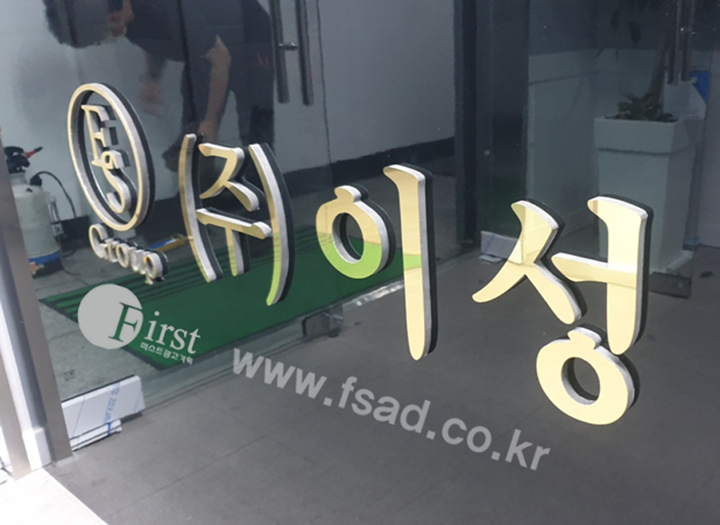 똑같은 사양으로 제작한 티타늄골드입체문자를