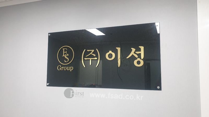 펄이 들어간 검정 아크릴에 티타늄골드 입체문자를