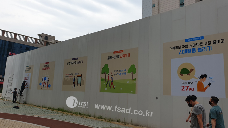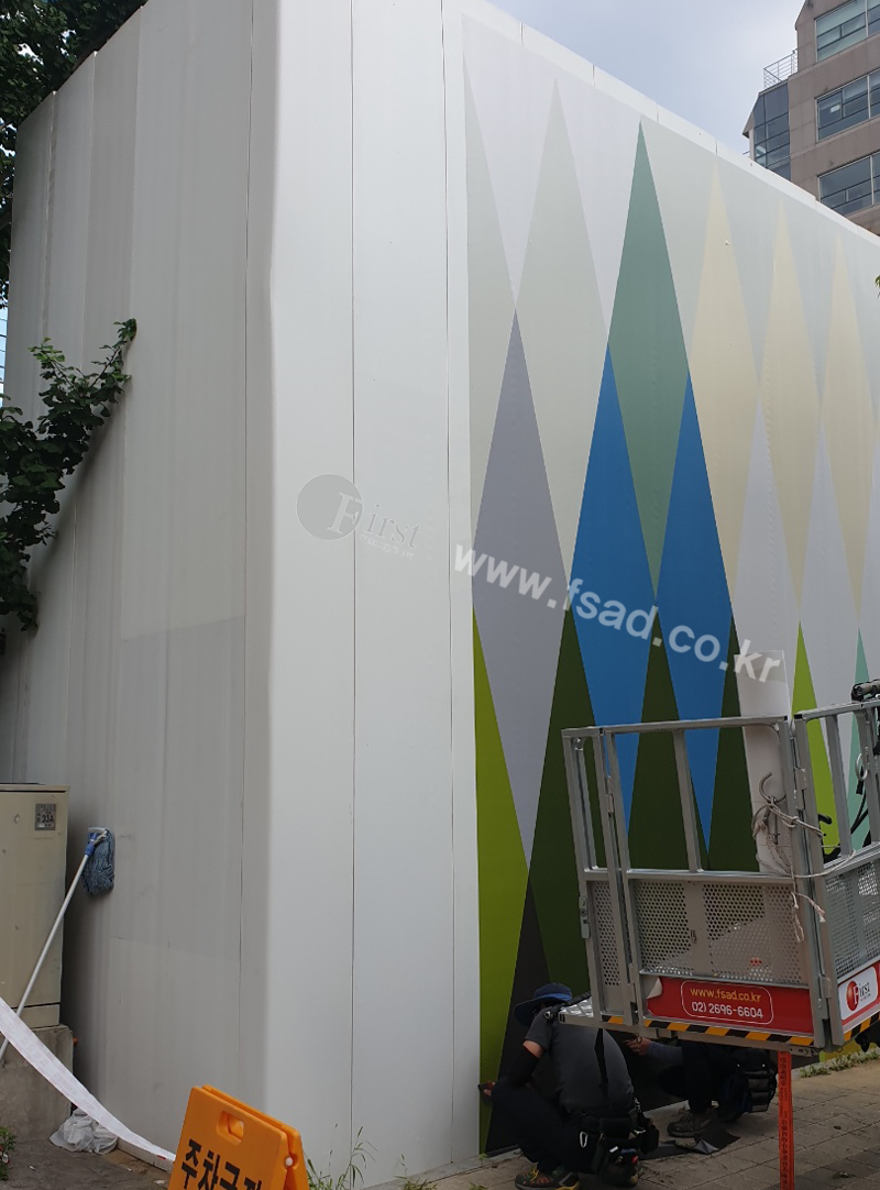 문구등을 디자인한 실사를 휀스가림막에 시공해야한다는 것입니다^^