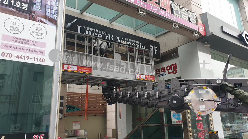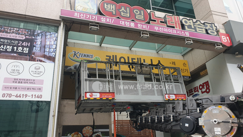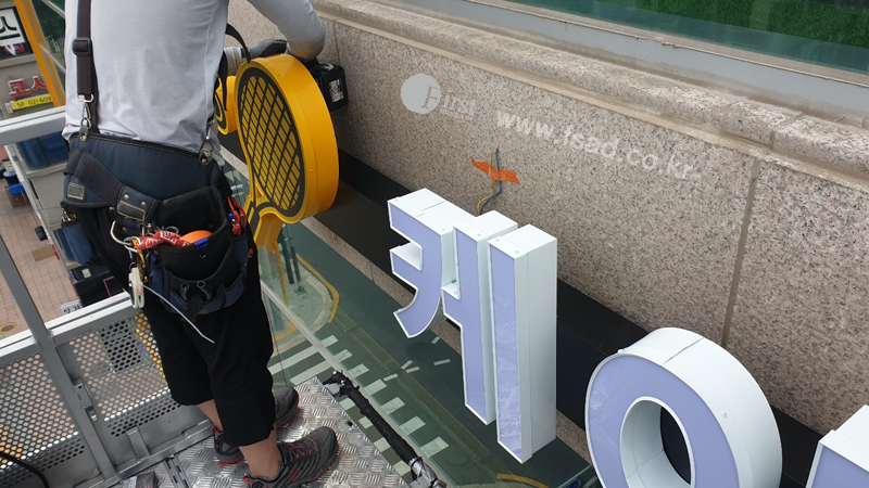 돌출간판 철거 후 간판화면교체 작업하는 동안