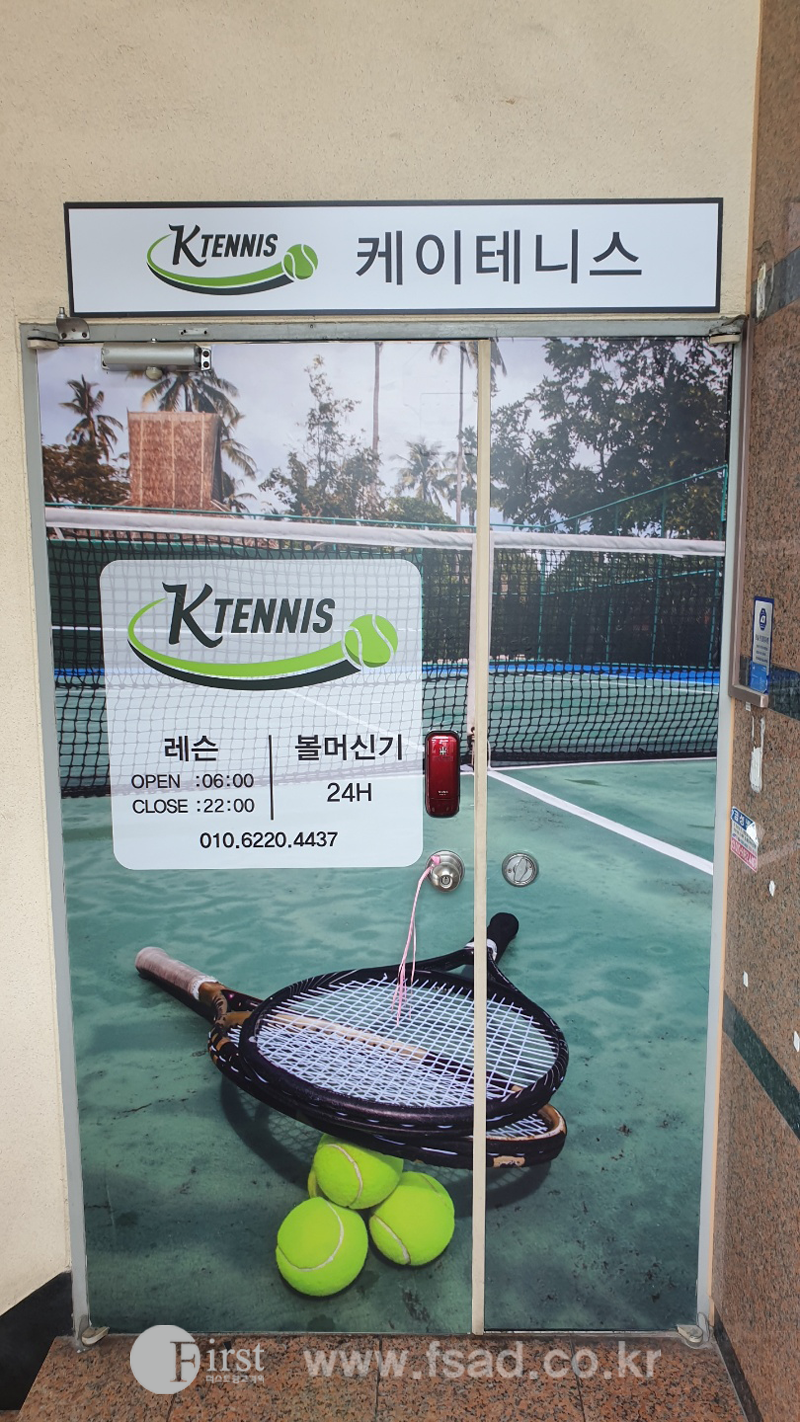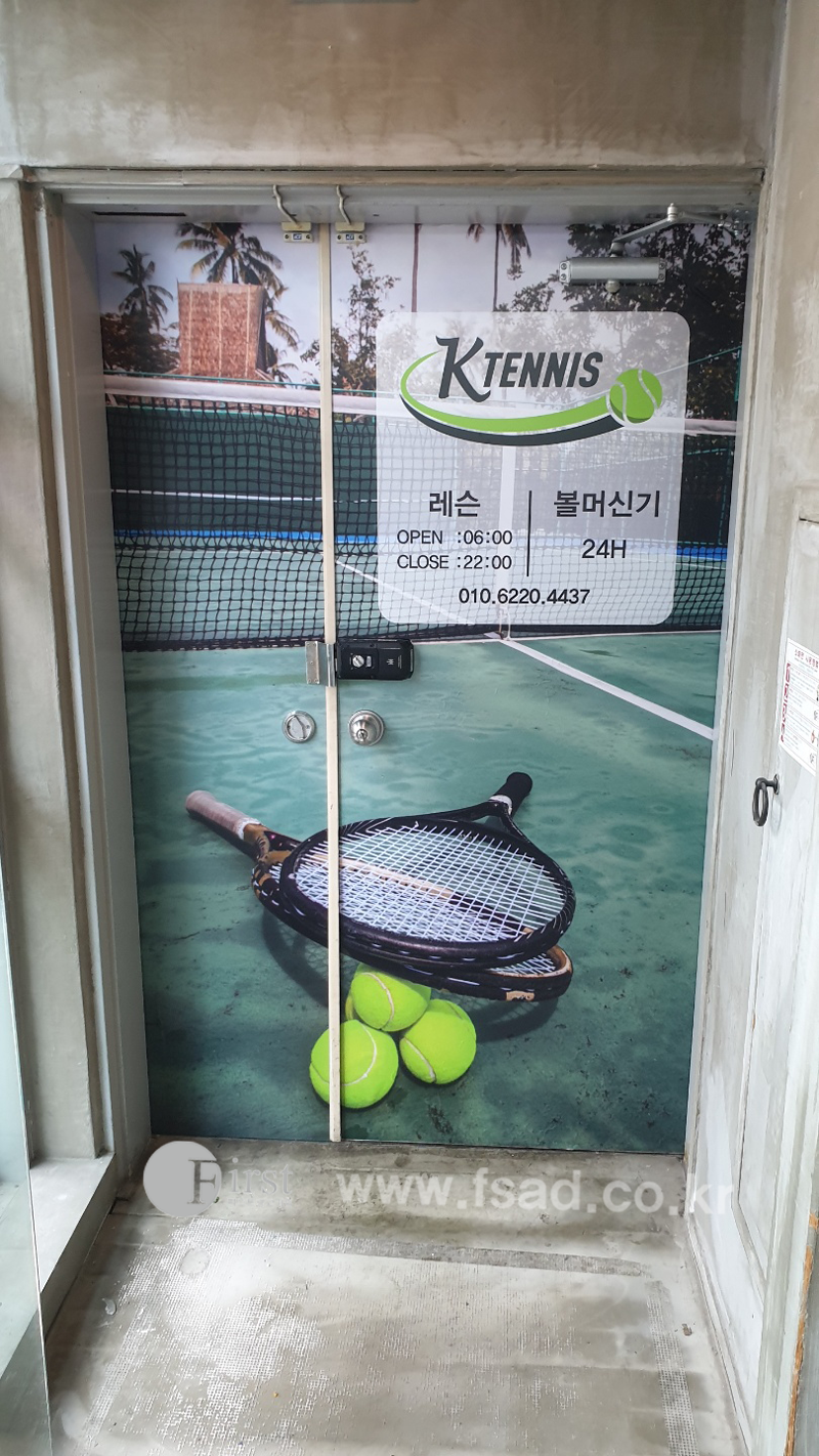 케이테니스의 방화문에 실사출력물을 교체중인 모습인데요