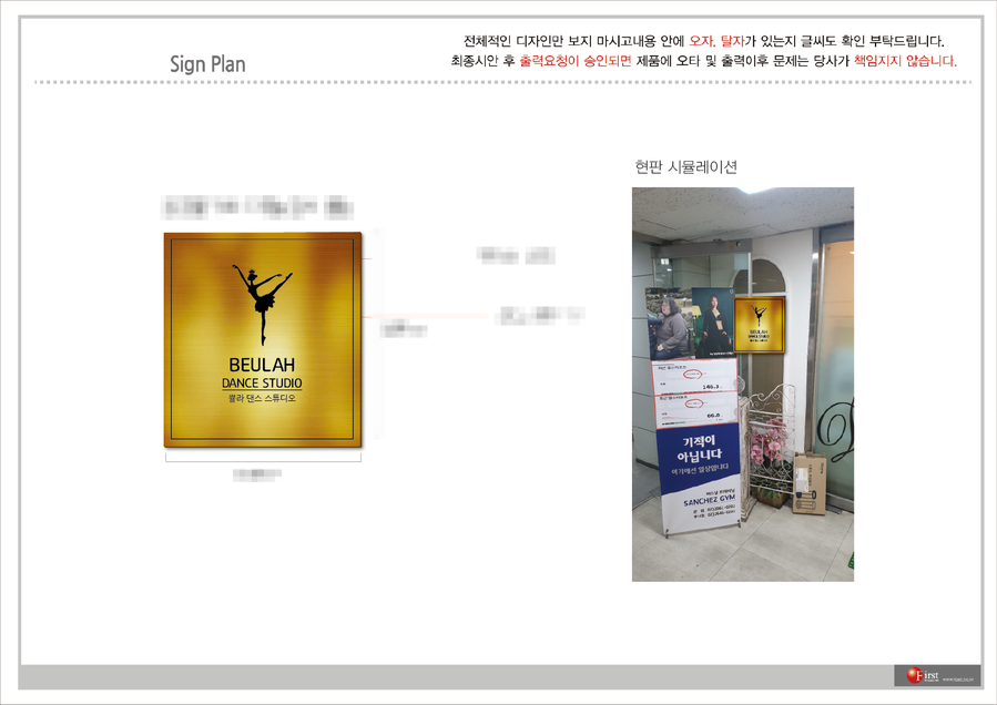 쁄라댄스스튜디오의 실내사인물 시공에 대해