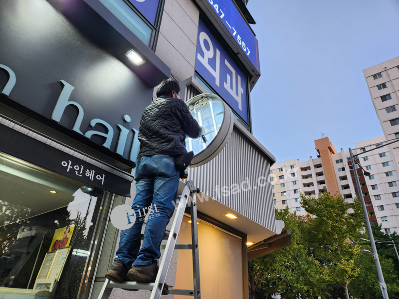 돌출원형간판의 낡은 형광등 또한 새롭게 교체해드렸어요!