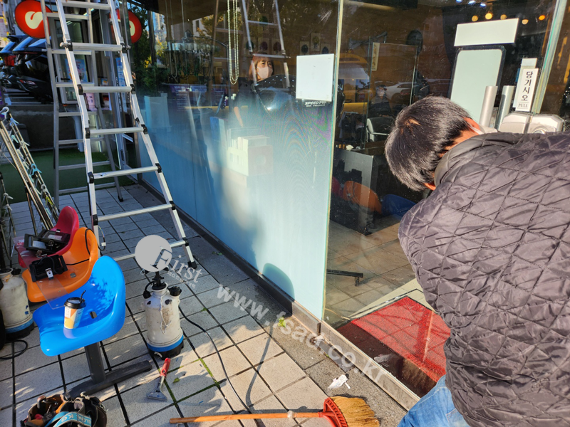 이물질이 들어가지 않게 조심조심 유리창선팅 시공을