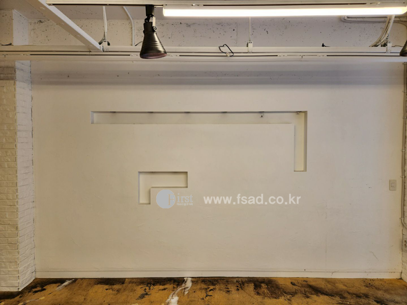 실내로 들어와 거울에 로고시트컷팅을 시공해드렸구요!
