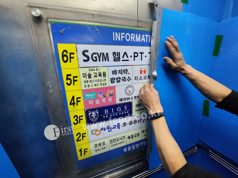 1층 로비와 엘레베이터 내부의 인포메이션에