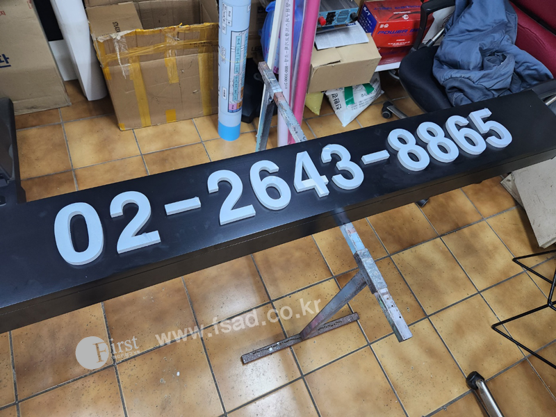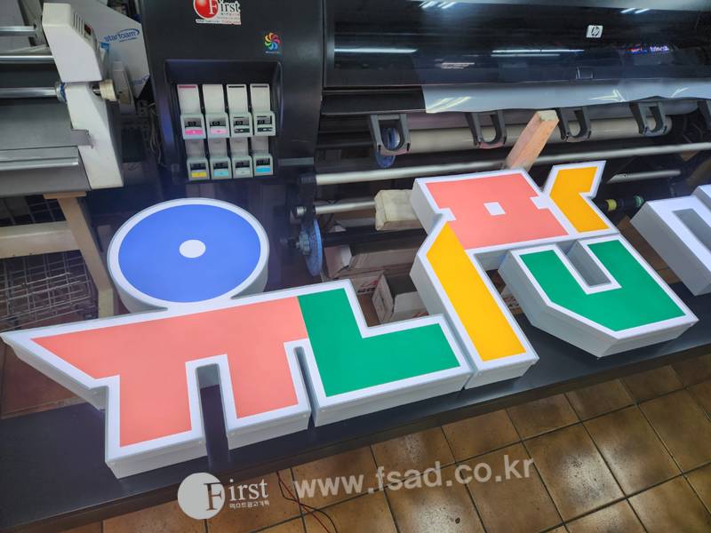 실사출력물 준비 후 제작이 끝난 LED문자채널간판 및