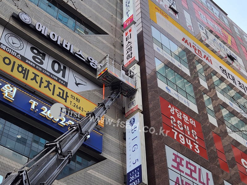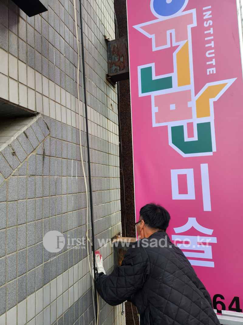 돌출간판 화면과 형광등 교체 작업 진행중인