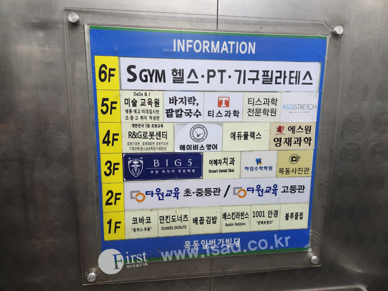 목동일번가빌딩의 인포메이션 4층 R&G로봇센터를